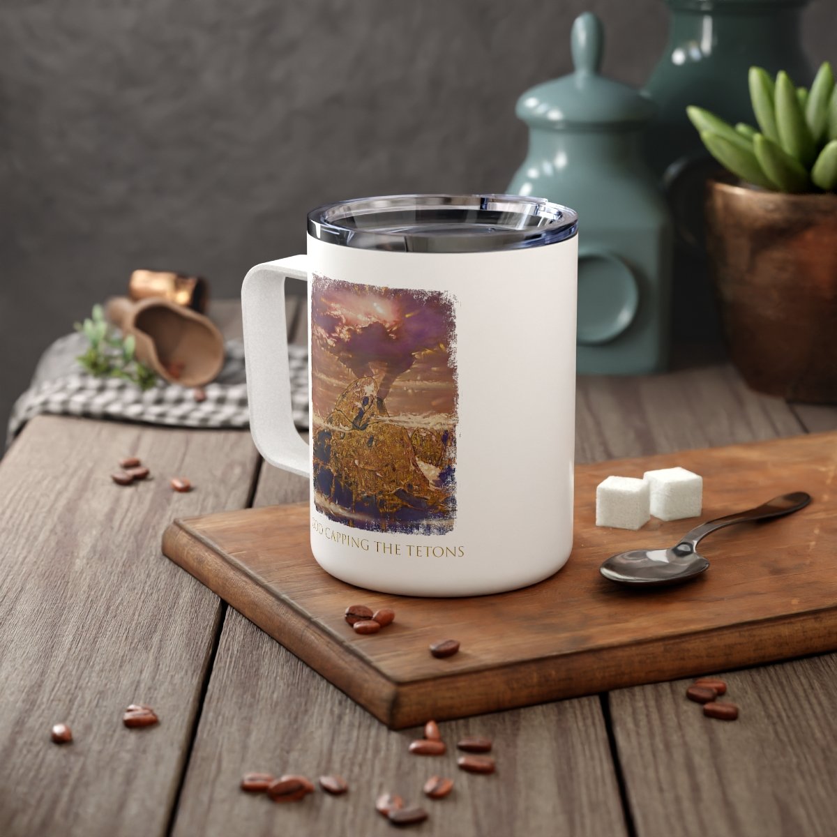 God Capping The Tetons by Ron DiCianni – Insulated 10oz Coffee Mug (Rough Edge Version)